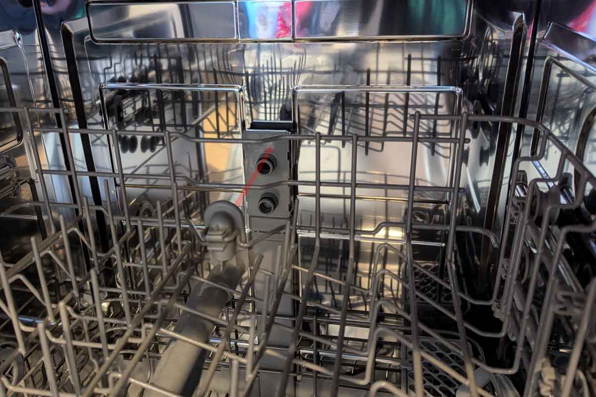 I begin peering into the dark abyss of the dishwasher tub to see what’s blocking the path. I notice the manifold—the mechanism that sprays water into the top drawer—is not lining up with the pipe leading to the spinner. It looks just a fraction of an inch off. This misalignment creates just enough resistance to keep the door from engaging the safety latch.