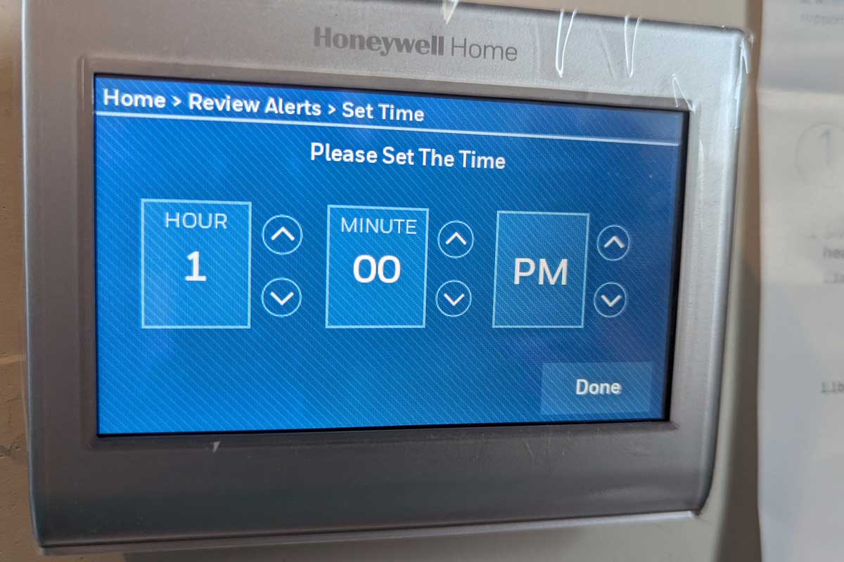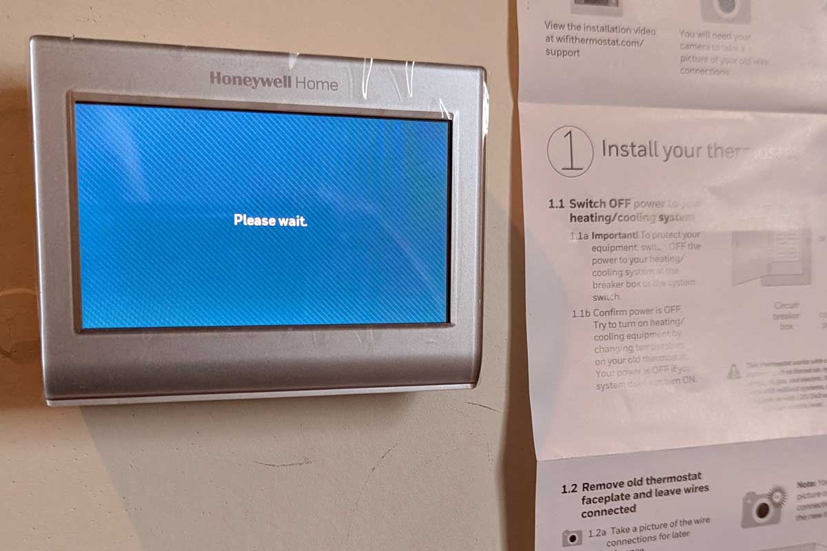 The physical wiring is done, but the real test is whether the system will actually turn on and do what it’s supposed to do. I flip the breaker back on and power up the Honeywell 9000. Success! The screen illuminates, and I’m ready for the testing phase.
